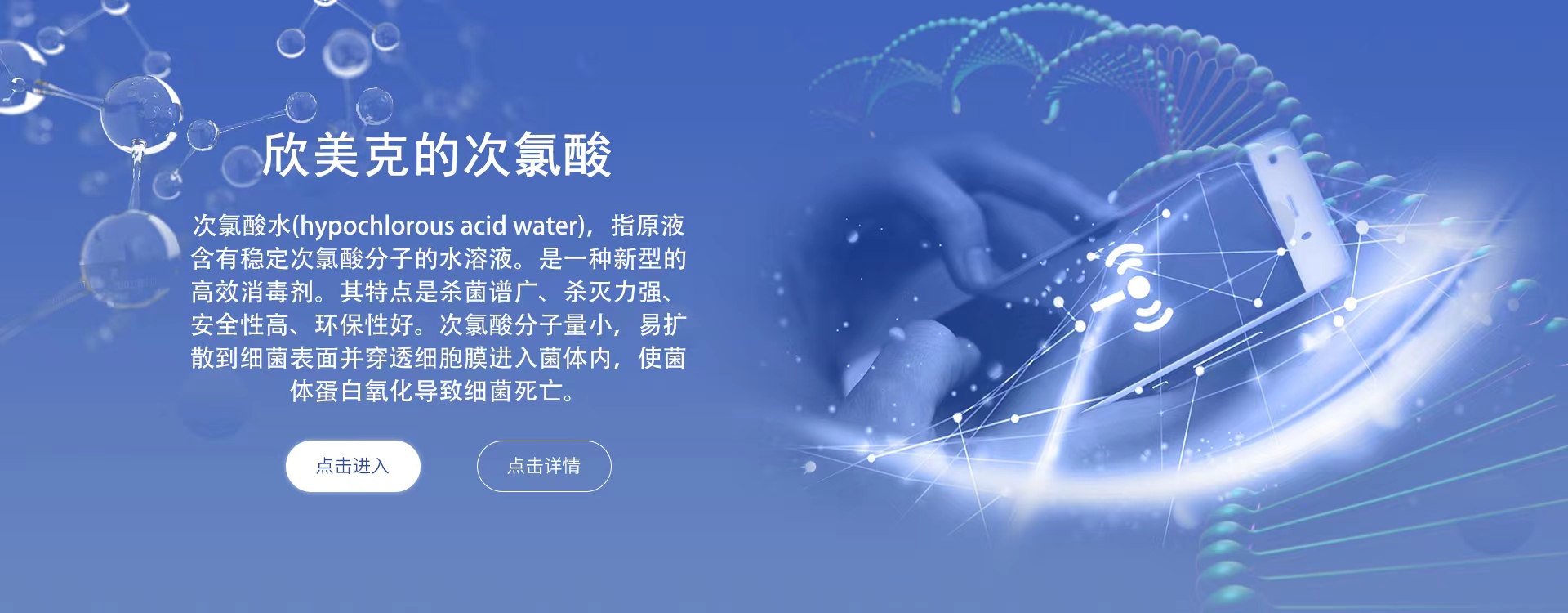 欣美克公司與日本近藤技術(shù)研究所合作,引進(jìn)日本全新專(zhuān)利技術(shù)(非電解微酸性次氯酸水生成工藝),創(chuàng)新研發(fā)一體化消毒殺菌設(shè)備,自主開(kāi)發(fā)物聯(lián)網(wǎng)智能管理系統(tǒng),為家庭、字校、醫(yī)療衛(wèi)生機(jī)構(gòu)、酒店、食品加工、農(nóng)業(yè)、畜牧業(yè)等行業(yè)提供高效的系統(tǒng)化,智能化的整體消毒方案。